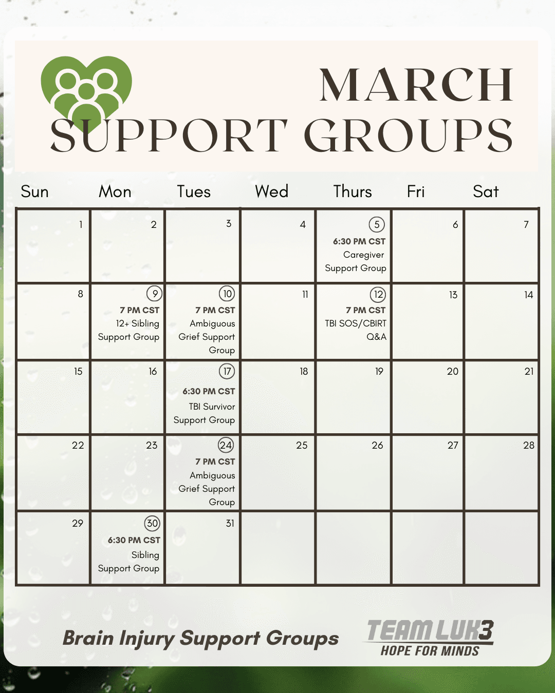 Team Luke Hope for Minds offers several types of virtual support groups: